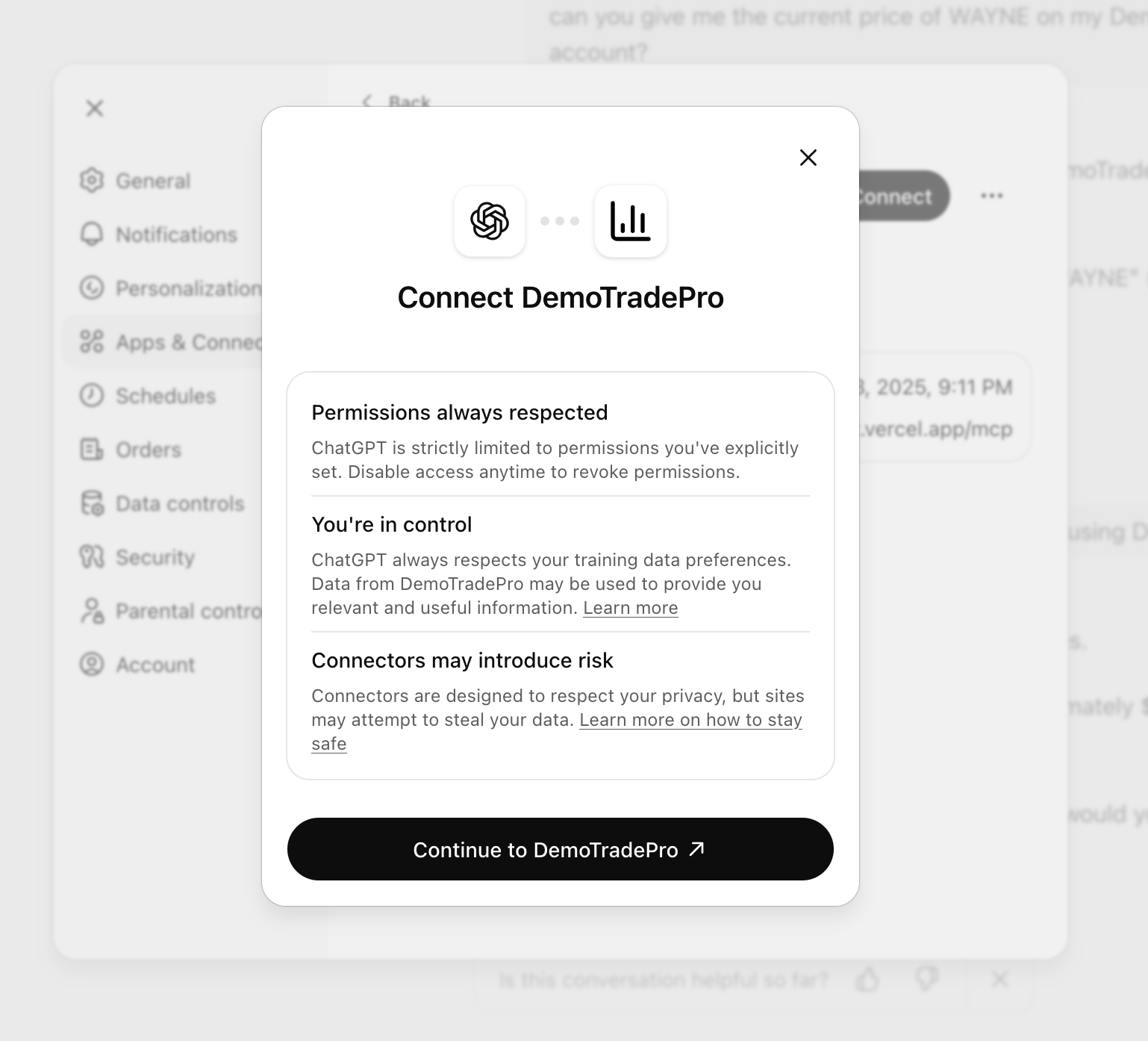 - Your MCP Server will need to be publicly accessible over HTTPS (e.g., via Vercel) since ChatGPT needs to reach it over the internet. Depending on your network, you may also be able to get away with using a localhost tunneling solution like