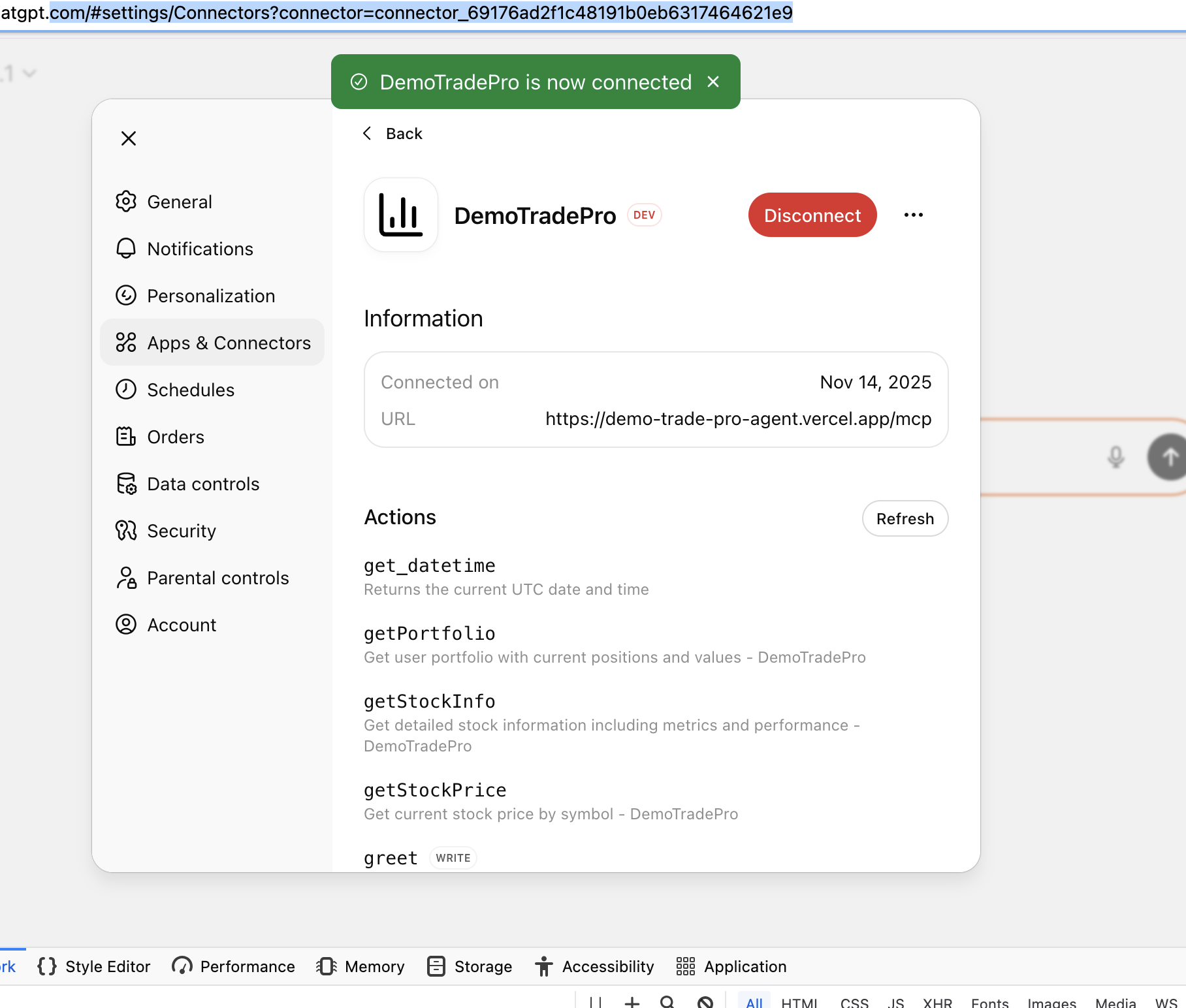 You can now start a new ChatGPT conversation and invoke your MCP Server tools directly from ChatGPT using natural language prompts: